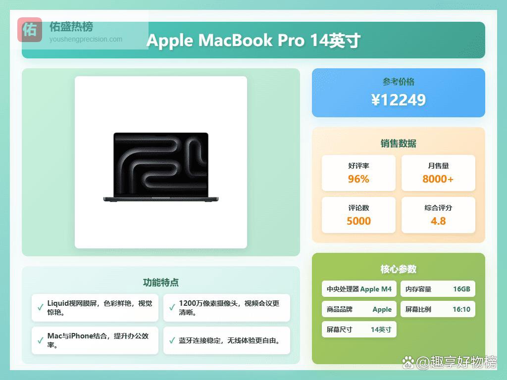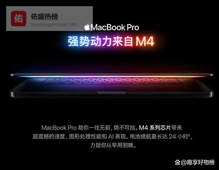 二、Apple这款MacBook Pro配备了Apple M4芯片,具有出色的图形处理能力和AI性能,在运行图像、视频编辑等专业软件时确实挺流畅。相比前几代,速度提升了不少,尤其是在处理复杂任务时能明显感觉到响应更快,实测多任务处理也还行。