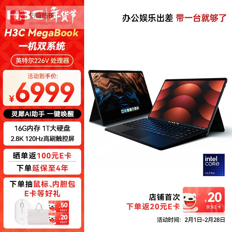 H3C新华三MegaBook【国补15%】双系统二合一笔记本电脑Lunar Lake/16G/1T本地AI长续航轻薄本平板电脑¥