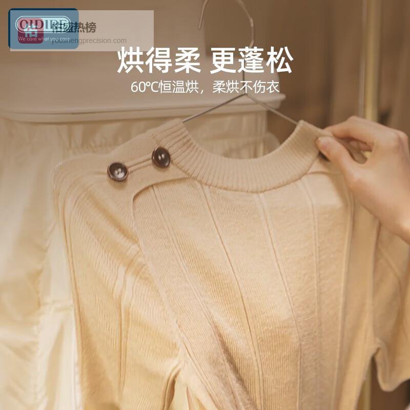 2️⃣温和烘干效果:360°暖风循环与恒温控制相结合,使得衣物在烘干过程中不受损失,既能快速烘干,又能保护面料的柔软与形状,让穿着更加舒适。