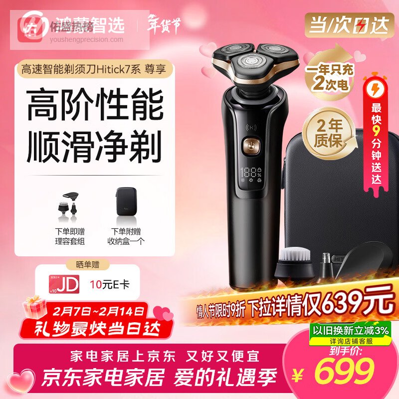 华为智选鸿蒙智选Hitick高速智能剃须刀7系尊享款银离子护肤男士电动刮胡刀送爸爸送男友送老公 年货礼物¥
