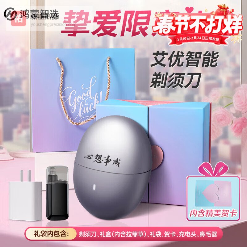 华为智选鸿蒙智选【情人节】 智能剃须刀电动便携款实用男士刮胡刀旋转式胡须刀礼盒送朋友父亲2026春节 【挚爱礼盒款】 冰霜银 礼盒+礼袋+贺卡 标配¥