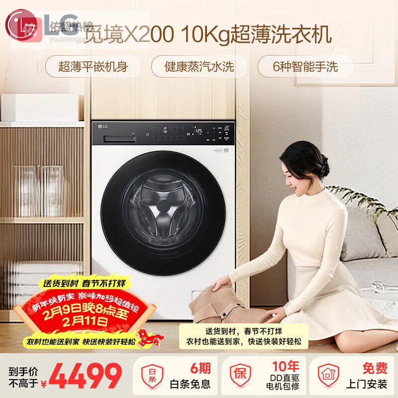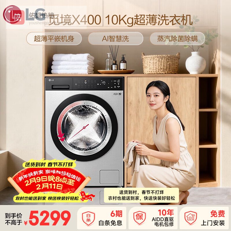 【京东自营】LG觅境X400滚筒洗衣机全自动家用10KG大容量AI智慧洗360°速净喷淋超薄平嵌FY¥