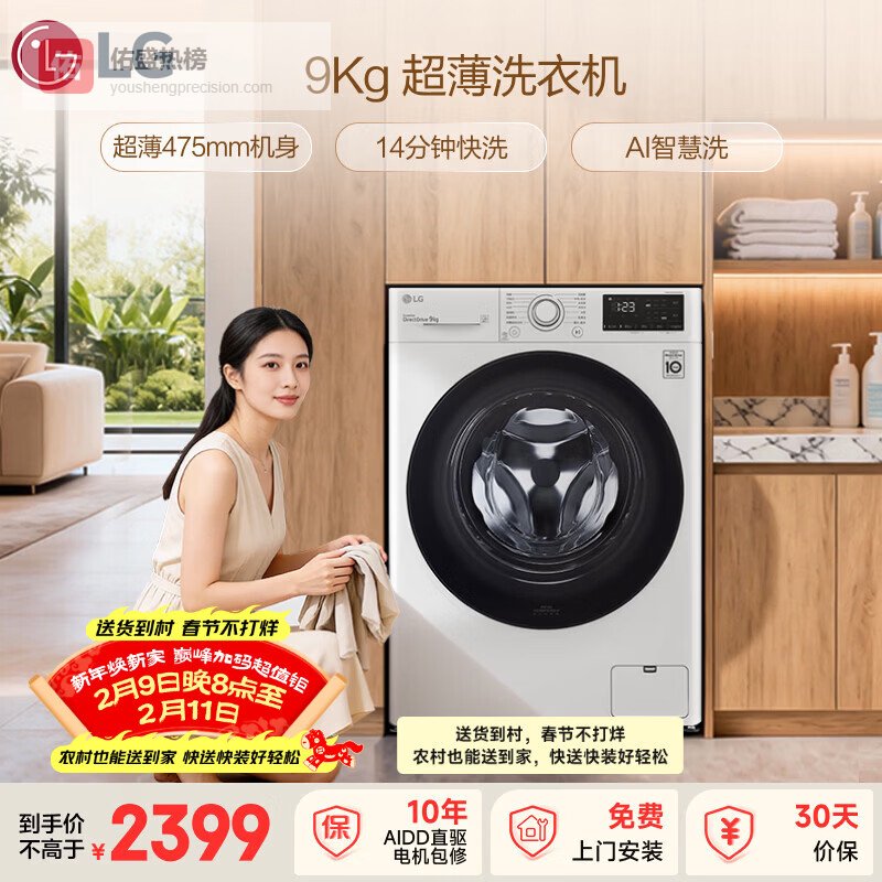 第三款:LG超薄9KG滚筒洗衣机FCY90N2W