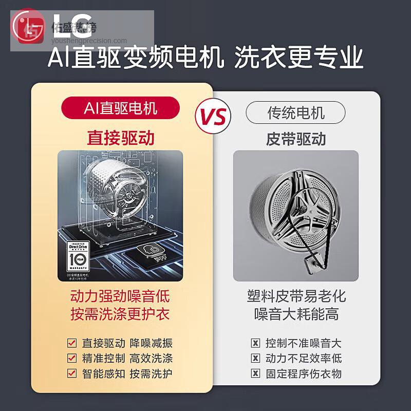 AI直驱变频电机:精确控制,减少衣物损伤,呵护每一件心爱衣物。