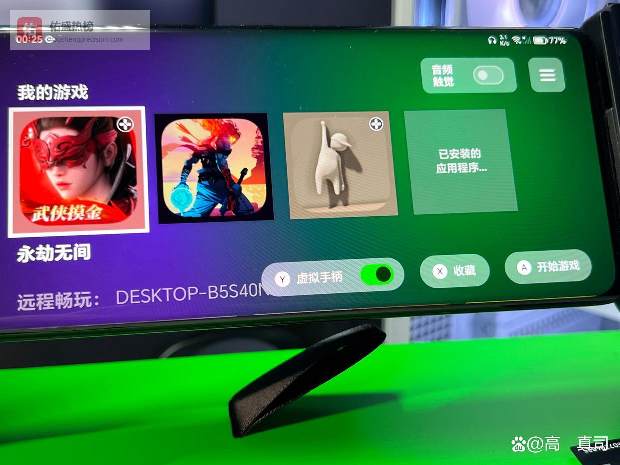 我本打算用moonlight或者parsec串流远程玩PC的,但后面发现雷蛇自己有做远程畅玩,想着操作逻辑更方便直接,所以根据引导提示设置完之后开了远程畅玩试了,整体表现还不错,延迟比较受两台设备连接的网络带宽影响。