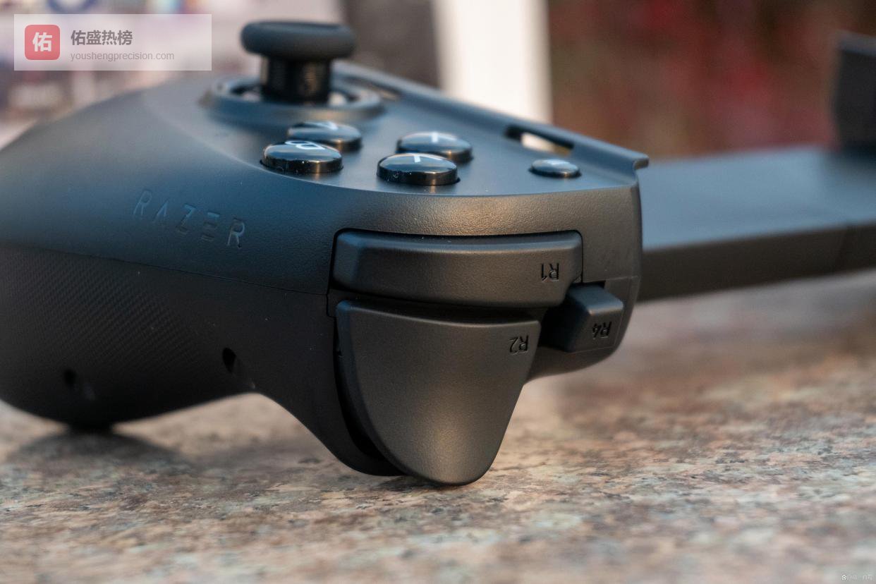 扳机键则是雷蛇的模拟扳机,基于自家键盘RT功能研发出来的,能自定义触发和触底深度,搭配Sensa HD触觉反馈能带来不输Xbox手柄的震动触感。扳机键初始压力较大,表面较手柄外壳更细腻、更滑。