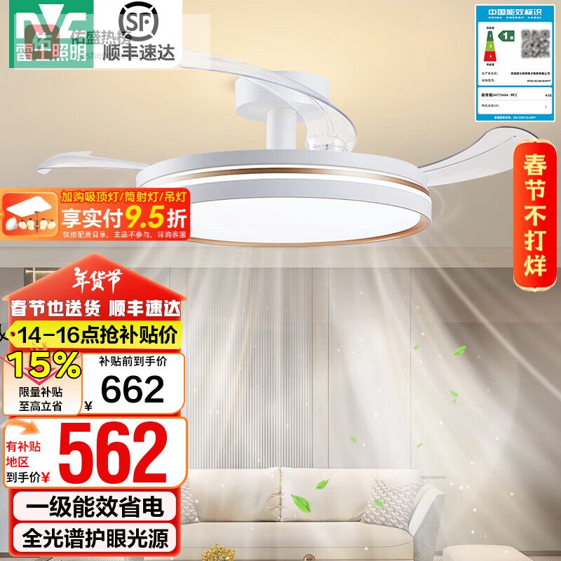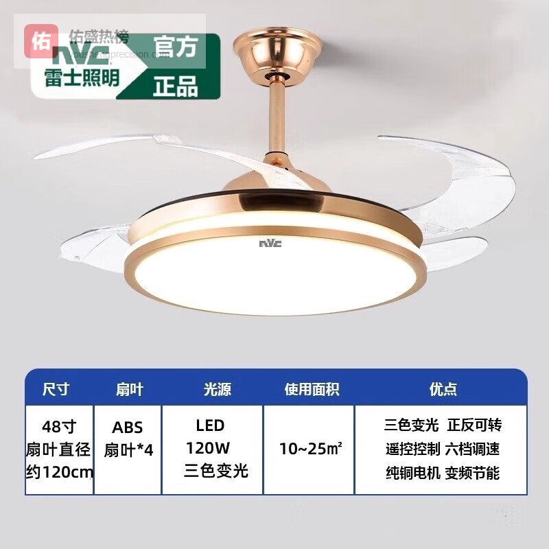 雷士(NVC)52寸变频静音风扇灯led隐形吊扇灯一体客厅灯家用餐厅房间吊扇灯 单边金48寸+小爱语音+变频+三色¥