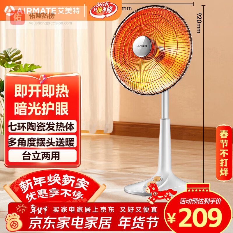 艾美特(AIRMATE)【台地两用】取暖器/小太阳/电暖器/鸟笼电暖气 即热即热家用定时摇头电扇远红外烤火炉¥