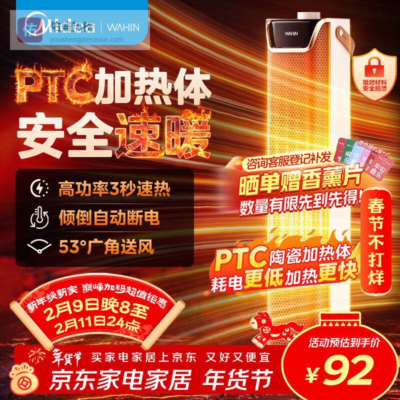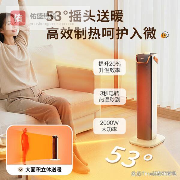 ② 广角摇头送暖:它能53度广角左右摇头,这样一来,取暖的范围就更大了。不用一直对着吹,整个房间都能照顾到,人走到哪里都能感受到温暖,还挺方便的。