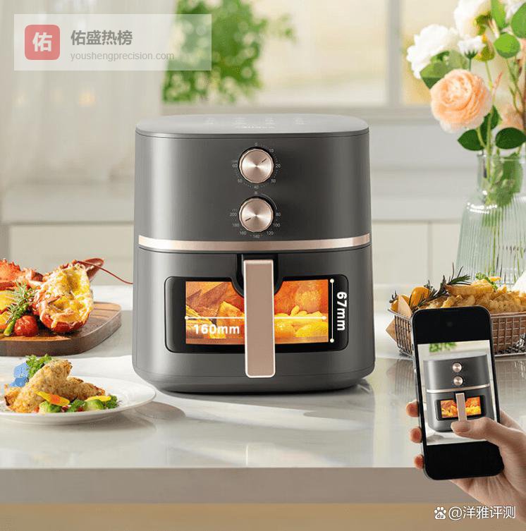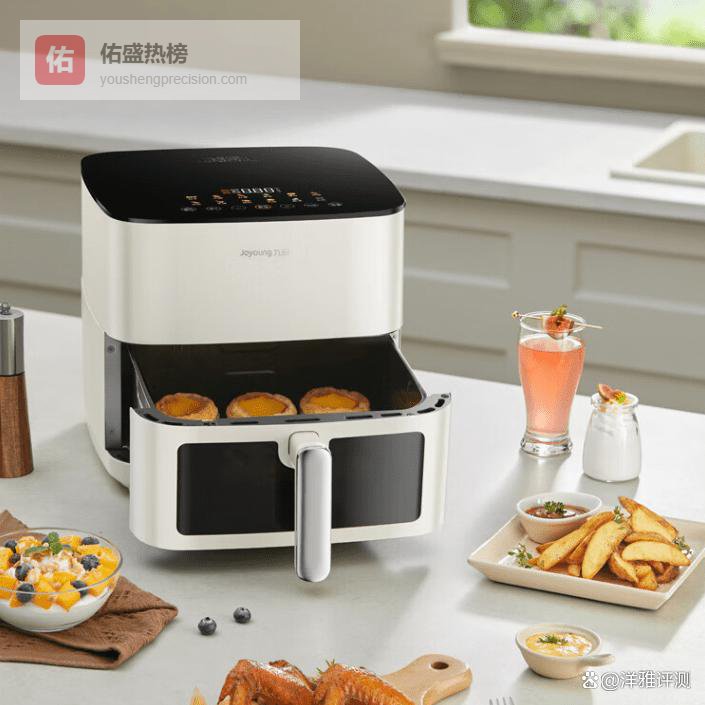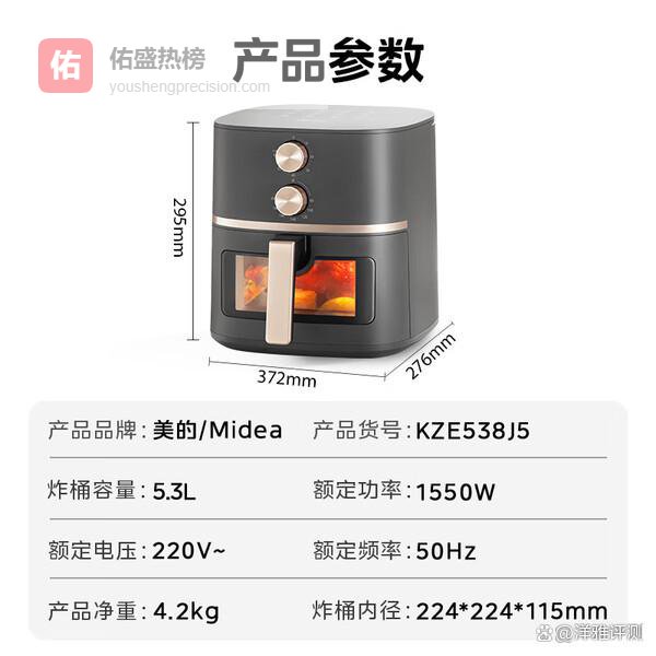 第1款:美的KZE538J5美的这款空气炸锅,5.3L容量确实够大,试了下,烤整鸡都没问题,家庭聚餐足够用。可视窗口设计挺实用,随时能观察食物状态,不用频繁拉开炸篮。双旋钮操作简单直接,老人也能快速上手,不像触屏那么复杂。