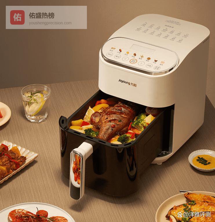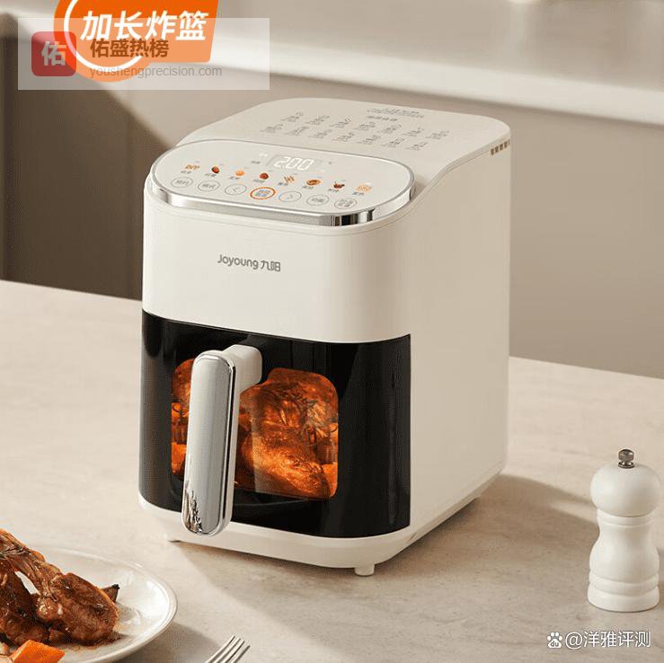 第2款:九阳KL55-V603九阳这款空气炸锅最吸引我的就是它的AI智能焖烤技术,不用炭火也能做出炭烤的味道,而且受热挺均匀的。1700W功率加热速度确实挺快,热风循环也做得不错,试了下烤鸡翅,外酥里嫩,汁水也保留的还可以。