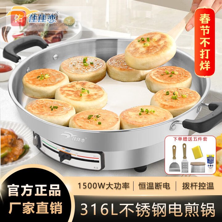 佳佳恋电饼铛316不锈钢家用加深加大新款电煎锅官方旗舰店烙饼平底多功能无涂层火力可调电火锅 经典款32CM 深度6cm【316L不锈钢】 不带蒸屉¥
