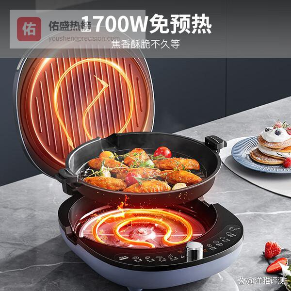 接下来,我们看看电饼铛。电饼铛最大的特点就是上下盘同时加热,能够快速、均匀地烹饪食物。它的适用范围非常广泛,不仅可以烙饼、煎饺、还可以烤肉、做披萨等等。一些高端电饼铛还具备多功能,可以实现煎、烤、烙、炒等多种烹饪方式。电饼铛的优点在于加热速度快、受热均匀、操作简单,而且清洁起来也比较方便。但缺点也很明显,比如油烟相对较大,需要注意通风。另外,电饼铛烹饪的食物脂肪含量通常较高,不太适合需要控制脂肪摄入的人群。