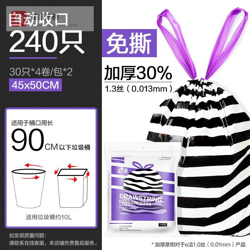 e洁自动收口垃圾袋免撕加厚时尚斑马纹 240只 45*50cm免撕 加厚30%¥