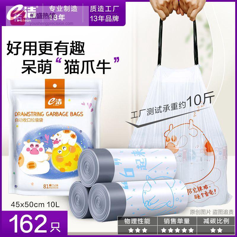 自动收口垃圾袋分为穿绳式和自粘式两种。穿绳式更适合厨余垃圾等重物,而自粘式则方便单手操作。测试发现,优质产品的收口粘合强度需达到5kg以上拉力才可能松脱。