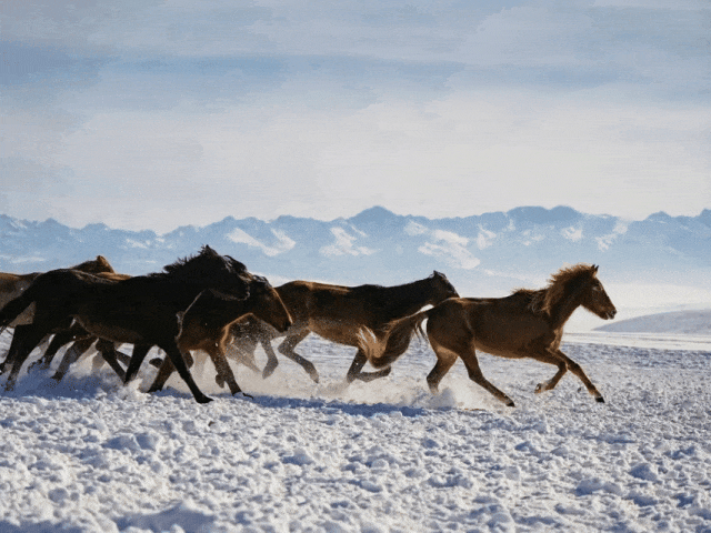 ▲新疆昭苏的天马踏雪。 新华社记者 徐宏岩 摄