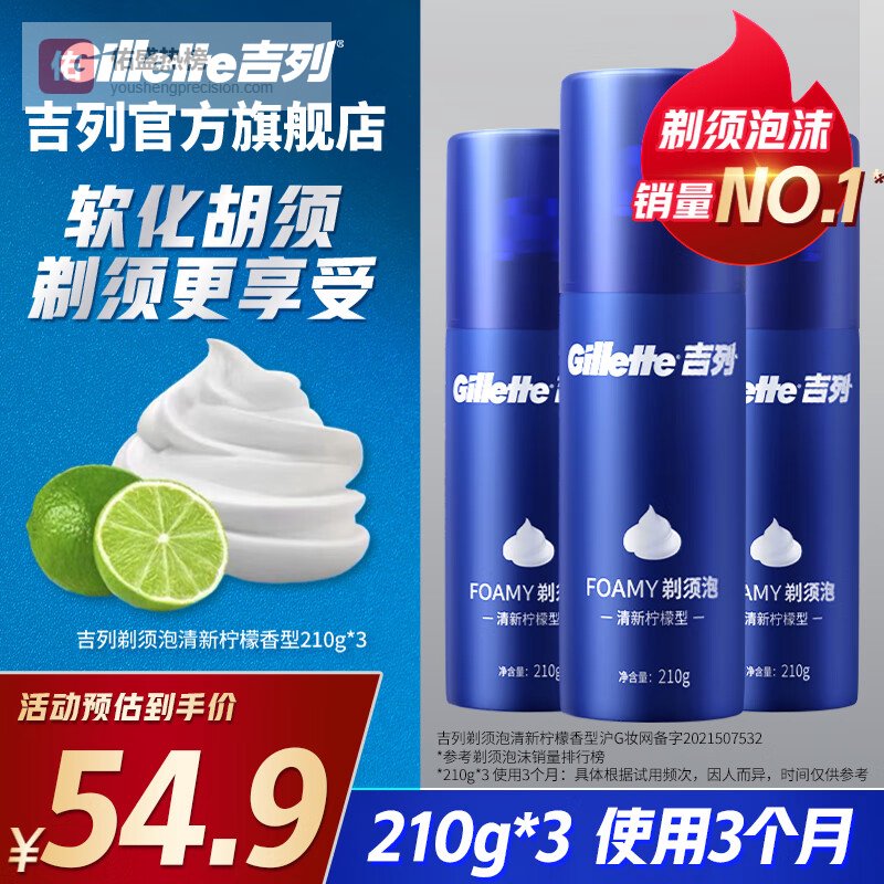 吉列剃须泡沫 剃须刀手动便携款 剃须膏剃须啫喱 刮胡泡沫 非刀头 官方旗舰店 非吉利 刮胡须刀 柠檬须泡 210g*3瓶 【店铺强推】¥