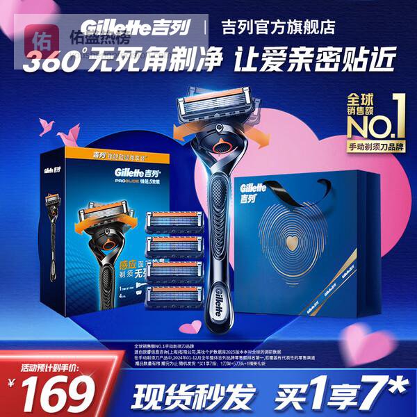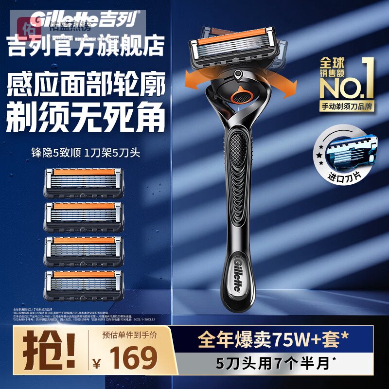 吉列剃须刀刮胡刀手动 5层刀片 男士手动剃须 情人节礼物送男生 官方旗舰店 非吉利 刮胡须刀 【赠送礼袋】锋隐致顺 1刀架 5刀头¥