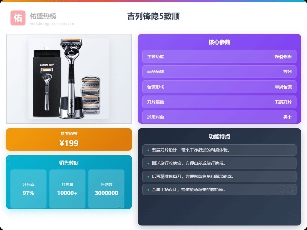 2026年型男必备:精选6款吉列剃须刀,推荐几款热门型号1、吉列锋隐致顺