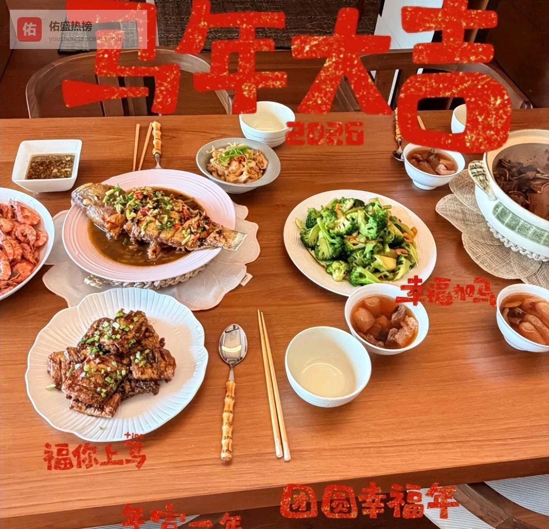照片里的细节,远比精修的美颜更有说服力。婆家装修大气精致,空间开阔格调十足,一眼便能看出家境殷实;丈夫张向荣罕见出镜,黑色皮外套身姿挺拔,五官俊朗气质沉稳,哥伦比亚大学金融系毕业的背景,搭配福建金鹿集团创始人孙子的身份,妥妥的豪门贵公子,颜值与实力不输圈内男星。最吸睛的年夜饭,鱼虾肉蟹、热汤时蔬满满一桌,荤素搭配精致丰盛,烟火气与高级感并存,连手机壳都换成了喜庆红色,细节里全是新婚的甜蜜。