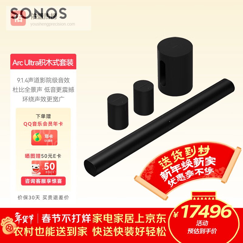 【京东自营】SONOSArcUltra+SubMini+Era100×2家庭影院9.1.4声道WiF¥