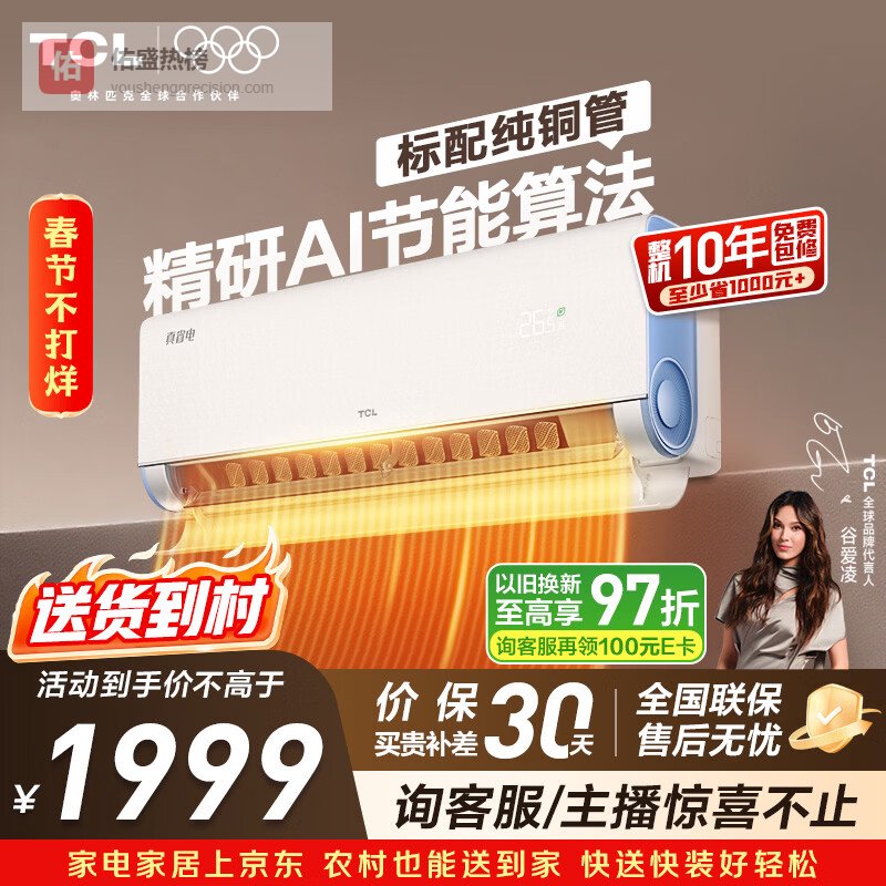 【京东自营】TCL空调京东联名真省电SE大1.5匹新一级能效变频纯铜管挂机冷暖壁挂式卧室KFR-35¥