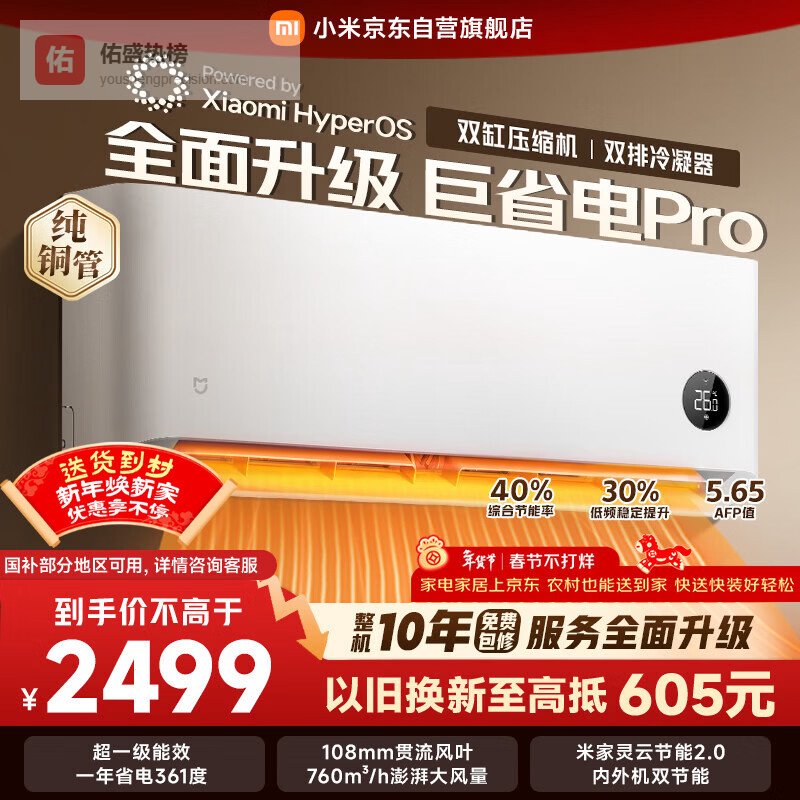 【京东自营】小米米家空调巨省电Pro1.5匹超一级能效双缸压缩机空调挂机35GW-NA20/V1A1¥
