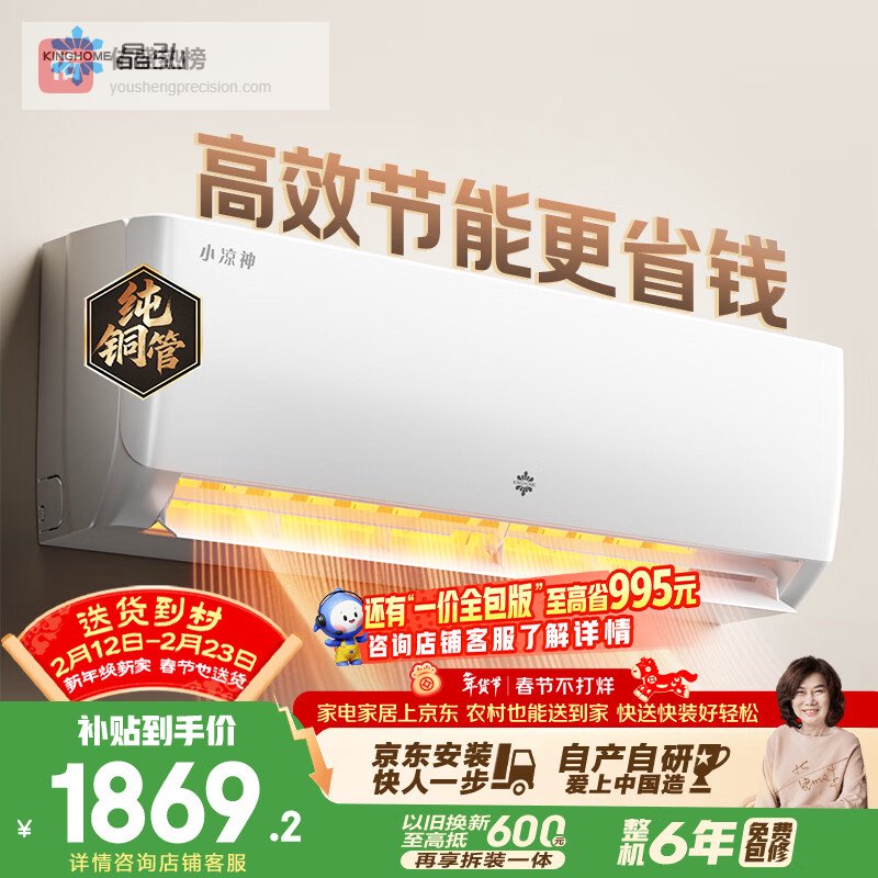 【京东自营】格力出品晶弘空调小凉神大1匹新一级能效变频纯铜管卧室省电挂机国家补贴KFR-26GW/J¥