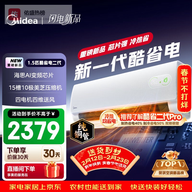 【京东自营】美的空调酷省电二代大1.5匹新一级能效变频冷暖纯铜管2026款空调卧室挂机国家补贴KFR¥
