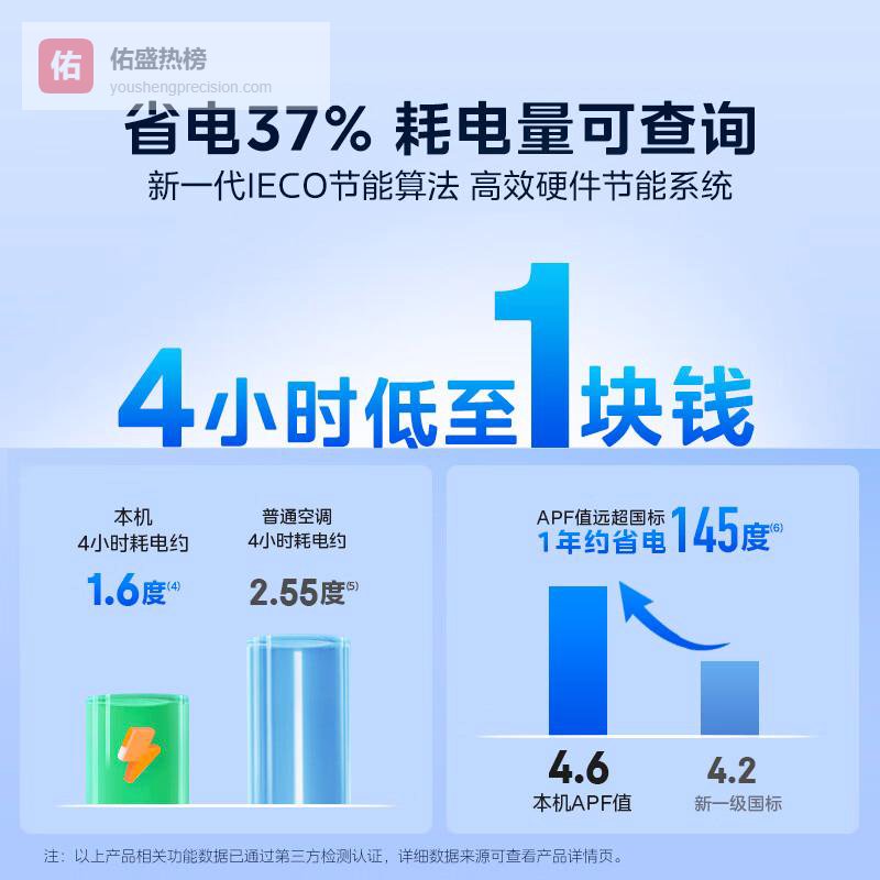 超省电科技:通过全链路AI技术,一年可节省一台空调的电费,长时间舒心使用。