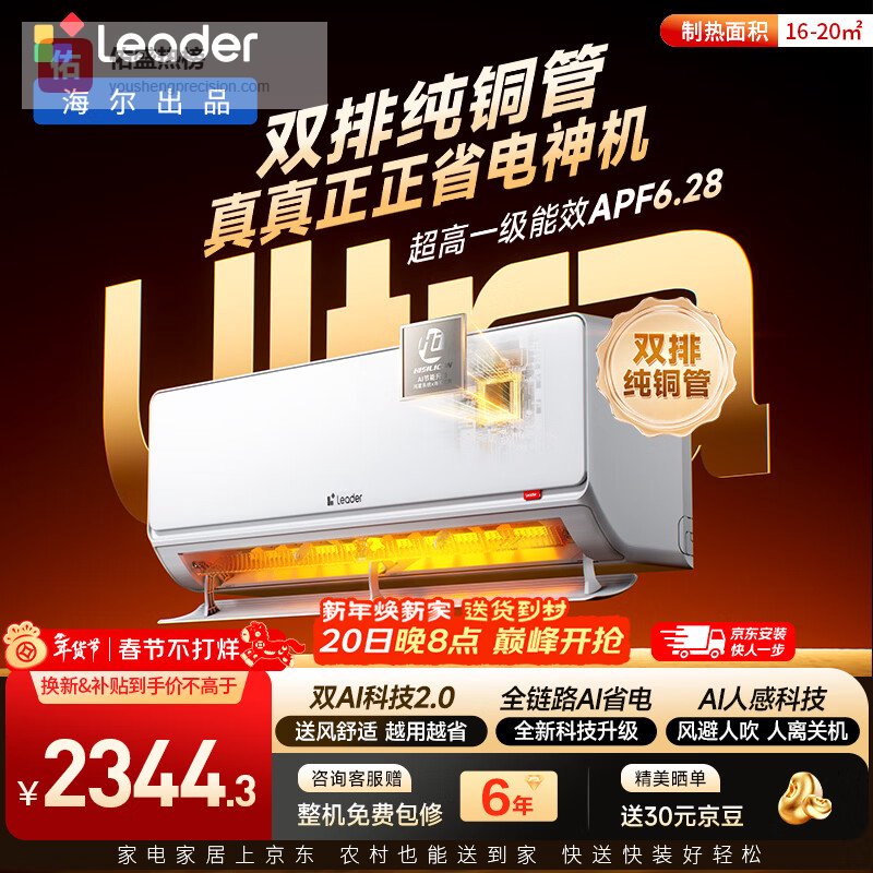 【京东自营】海尔统帅空调超省电Ultra神机双排纯铜管1.5匹超一级变频冷暖空调挂机国家补贴KFR-¥