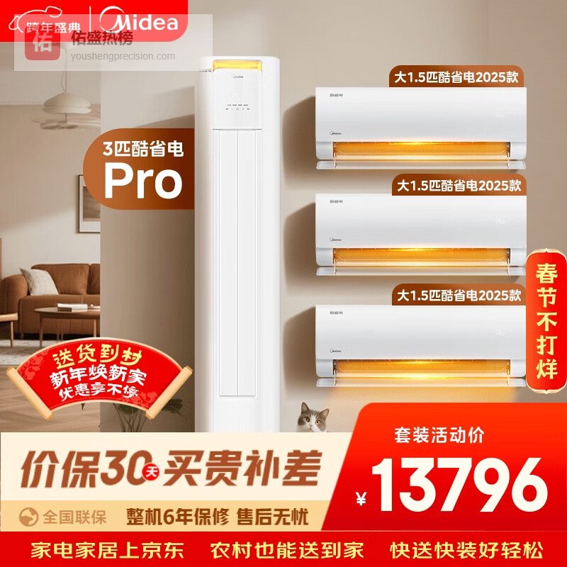 【京东自营】美的空调酷省电套装变频冷暖一级能效节能省电卧室客厅1.5匹空调挂机3匹柜机组合三室一厅¥