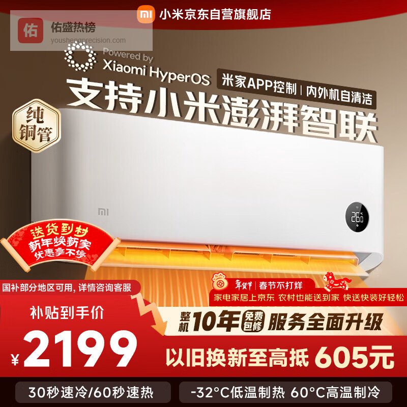 【京东自营】小米米家空调巨省电1.5匹一级能效快速冷暖空调挂机KFR-35GW/N1A1【整机十年质¥