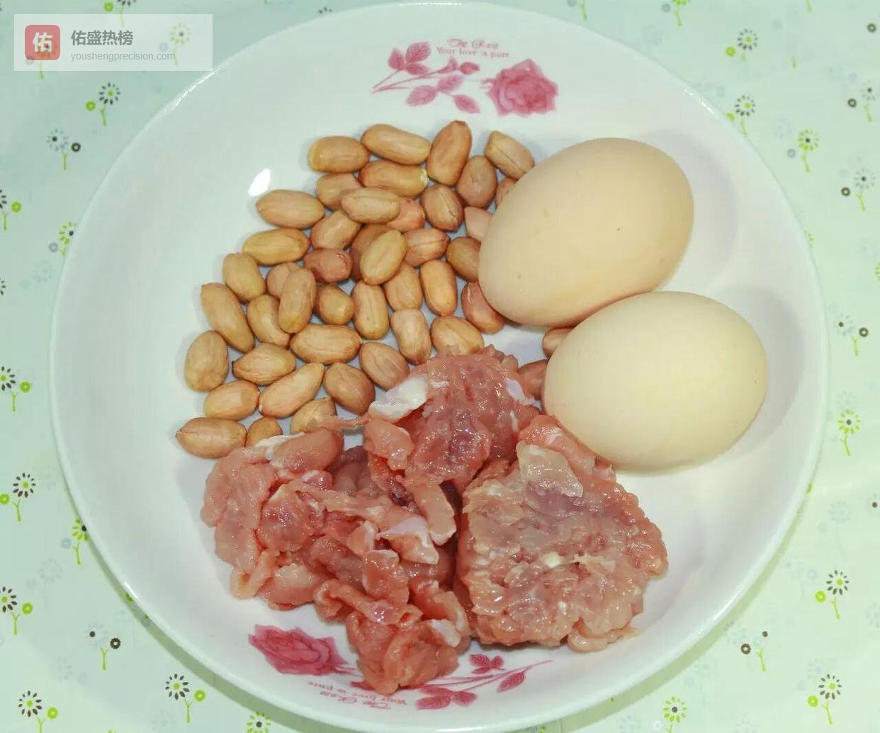 材料极简:益母草、瘦肉、鸡蛋、花生、盐。