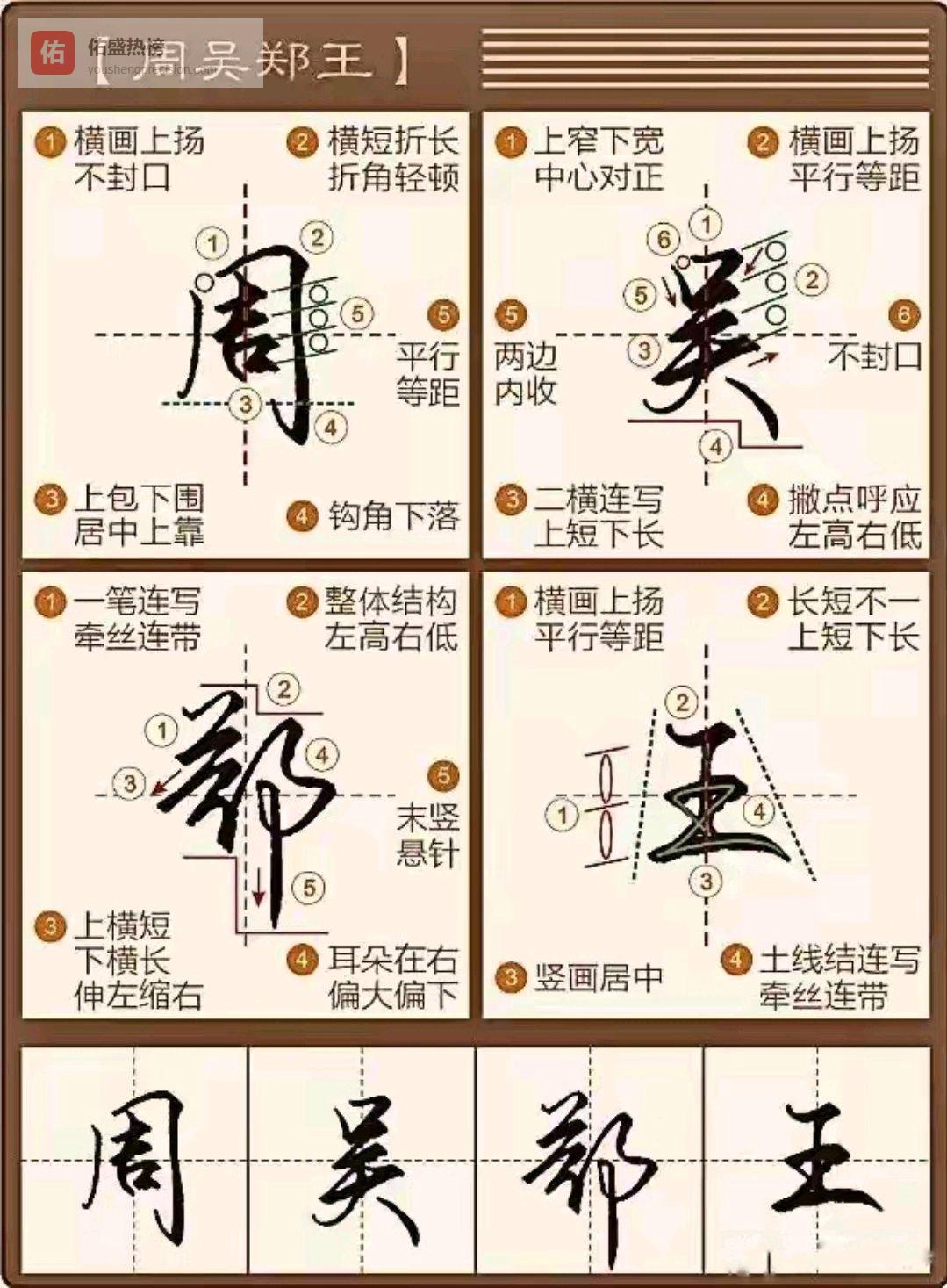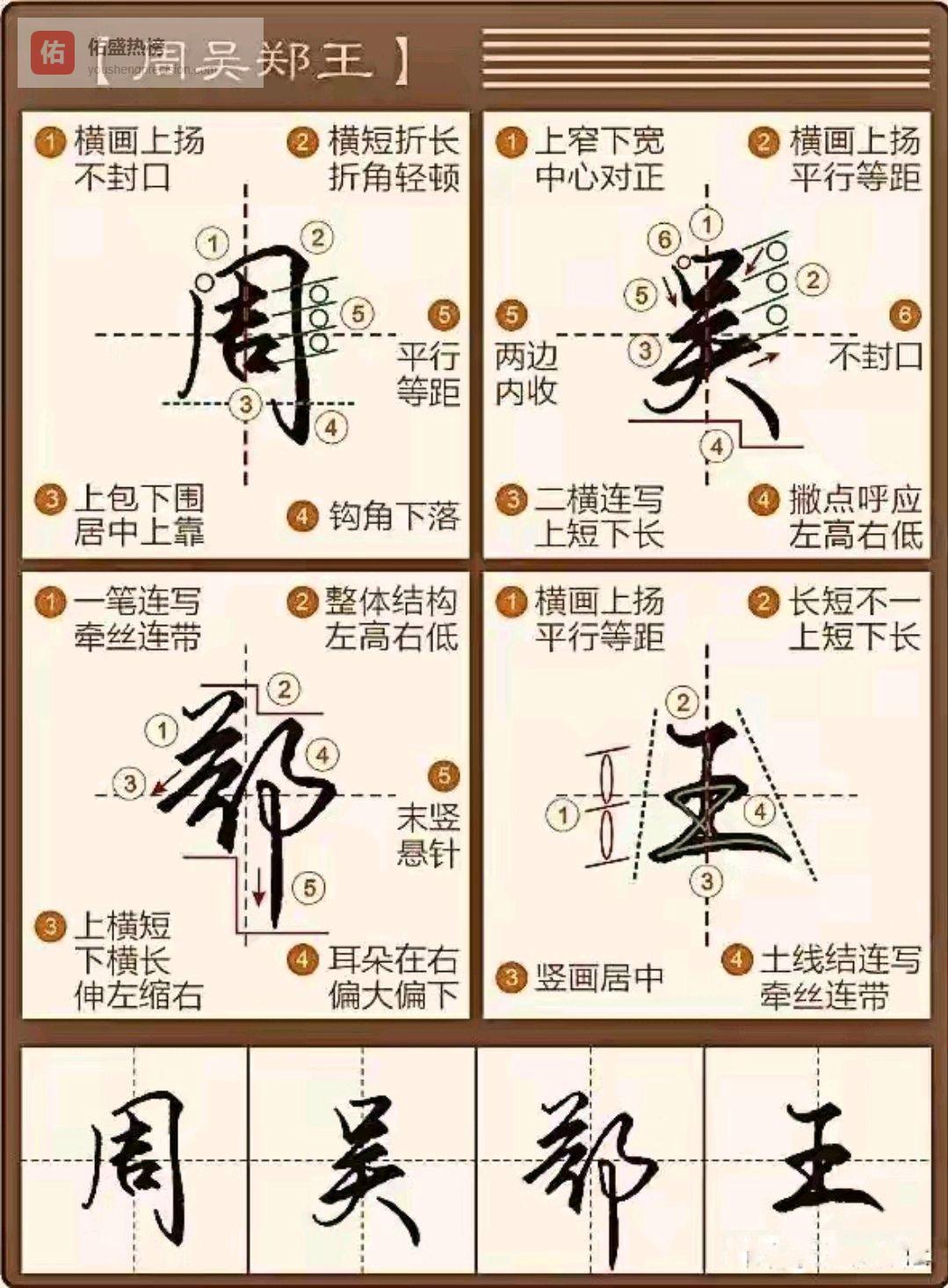 比如你可以选“周吴郑王”这四个姓,集中练“包围结构”: