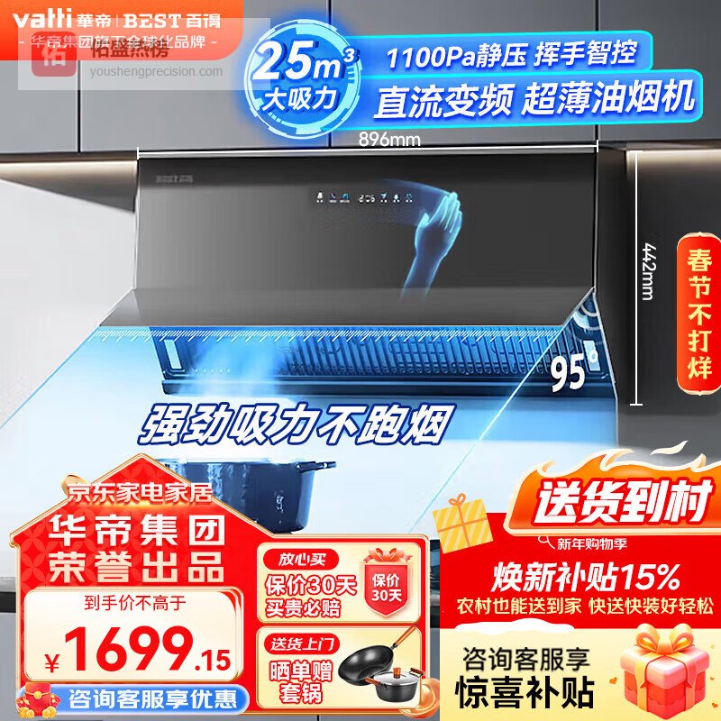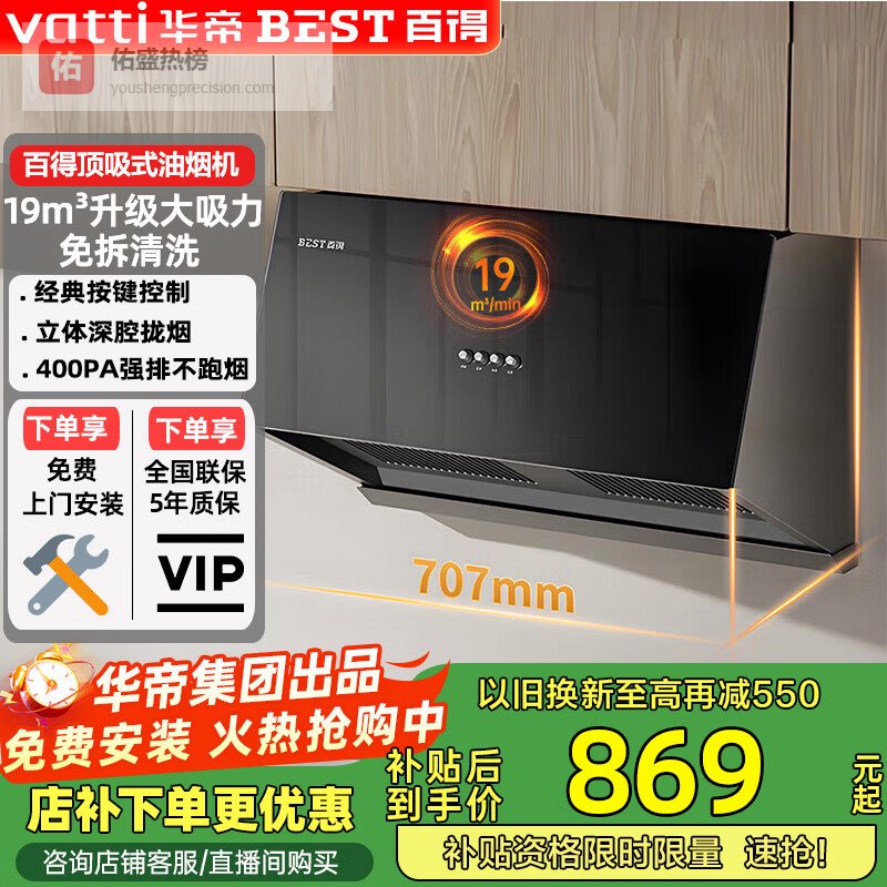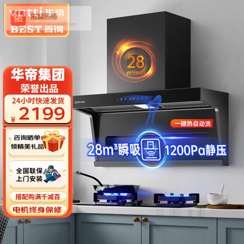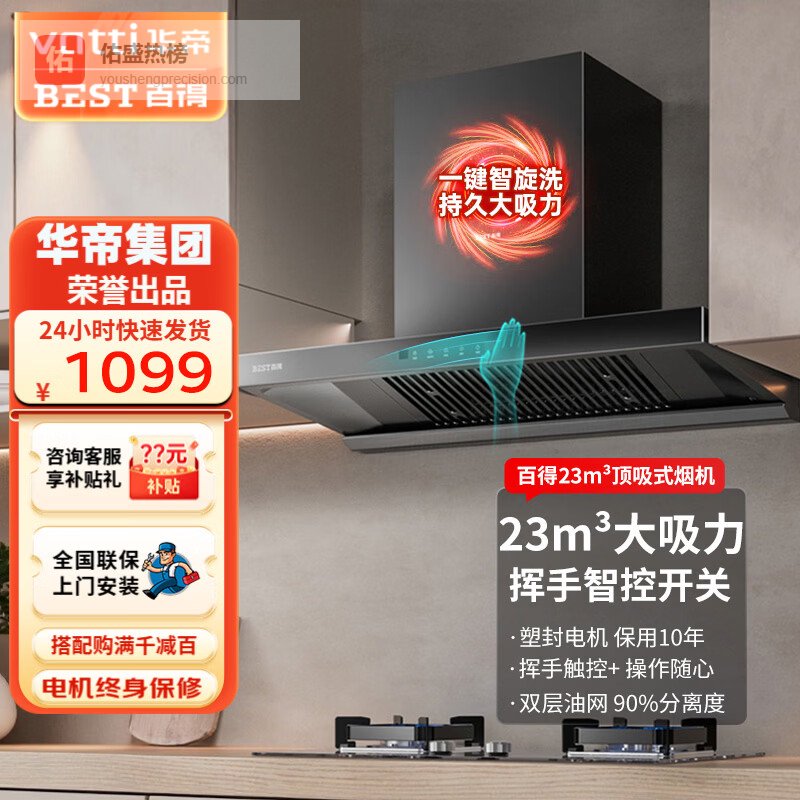 百得(BEST)华帝出品欧式顶吸抽排油烟机家用T型23立方大吸力脱排以旧换新一级能效自动清洗智旋洗 23立方智旋洗单油烟机¥