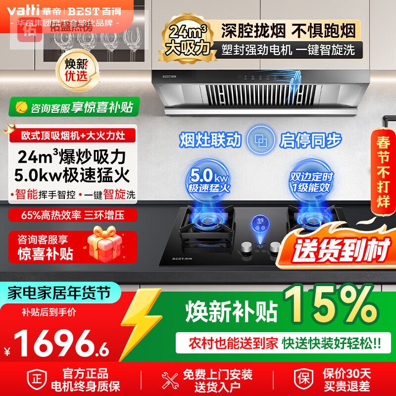 百得(BEST)华帝出品抽油烟机家用欧式油烟机顶吸大吸力脱排油烟机燃气灶套装挥手智控自动清洗 【定时+联动套装】ET300+定时灶301液化气¥