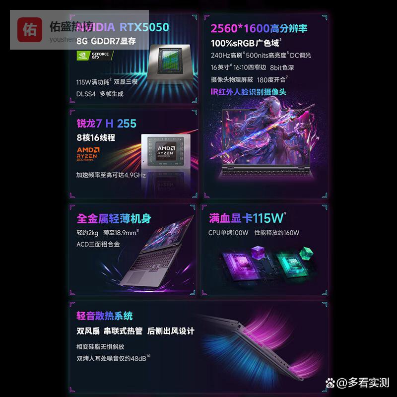 超高清显示体验:配备16英寸2.5K高刷新屏幕,120Hz刷新率,100% sRGB色域,带来色彩丰富、流畅细腻的视觉效果,非常适合创作和游戏。
