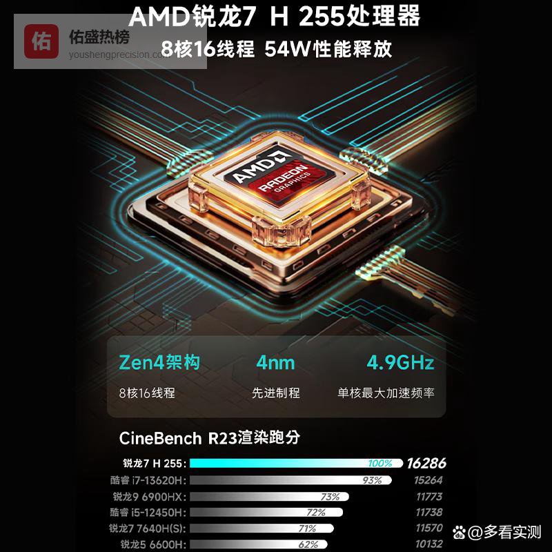 高性能处理器:搭载AMD锐龙7 H255,以8核16线程设计,最高提供4.9GHz的加速频率,从容应对多任务处理和高负载应用,让工作与娱乐都更加顺畅。