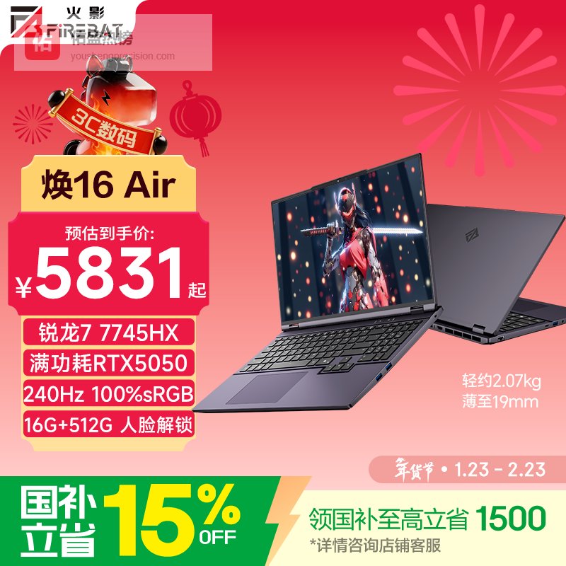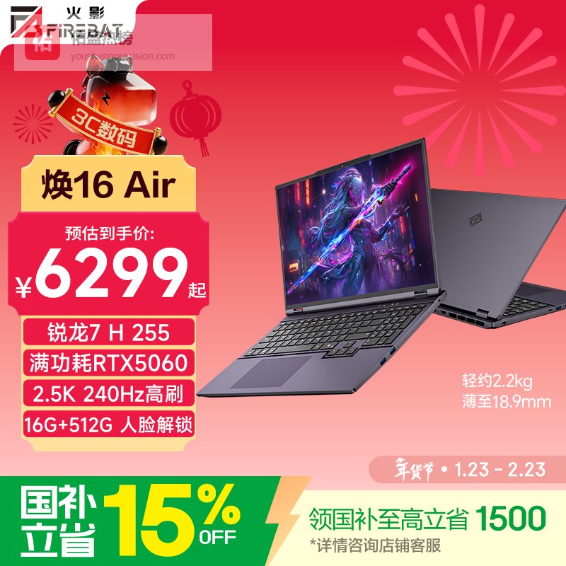 第四款:火影焕16锐龙7轻薄游戏本 H255