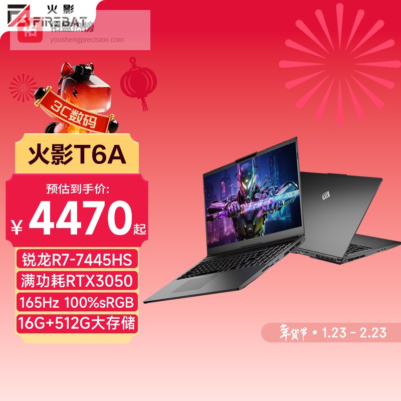 第二款:火影T6A锐龙R7游戏本 16G 512G 3050