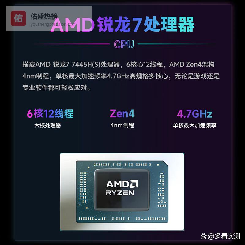 强劲性能释放:搭载AI锐龙R7-7445H处理器,提升游戏和多任务处理效率,满足高负载需求。