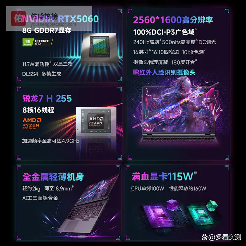 顶级性能配置:搭载锐龙R9HX处理器与RTX 5060显卡,完美适配高负荷工作和游戏体验,无论是游戏还是创作,均能轻松应对。