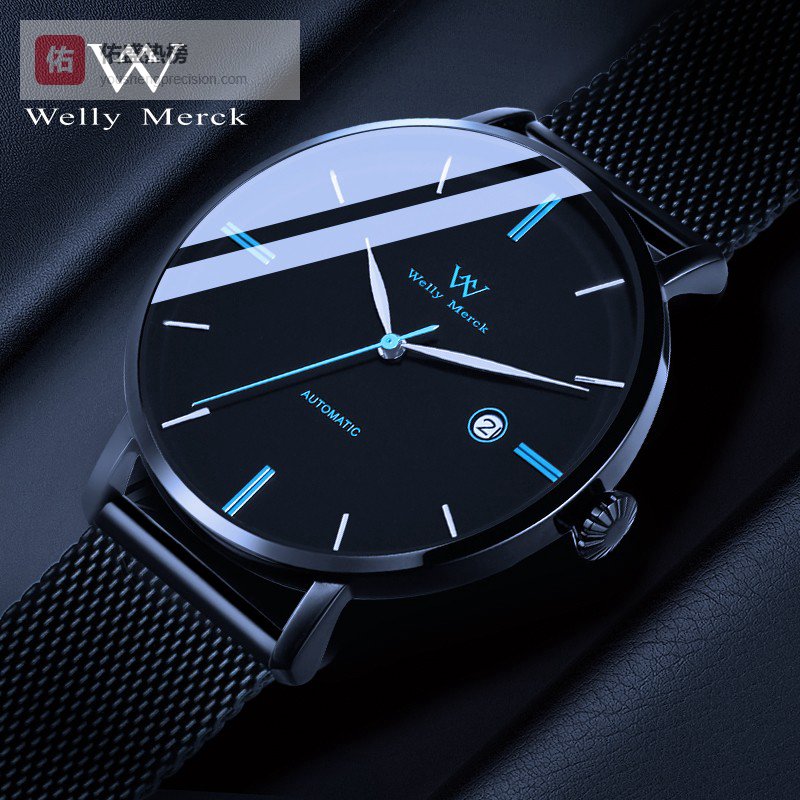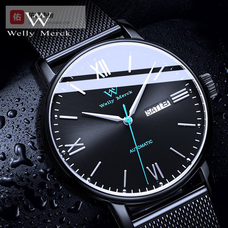 推荐七:威利默克商务男士机械表021款自动网状钢带