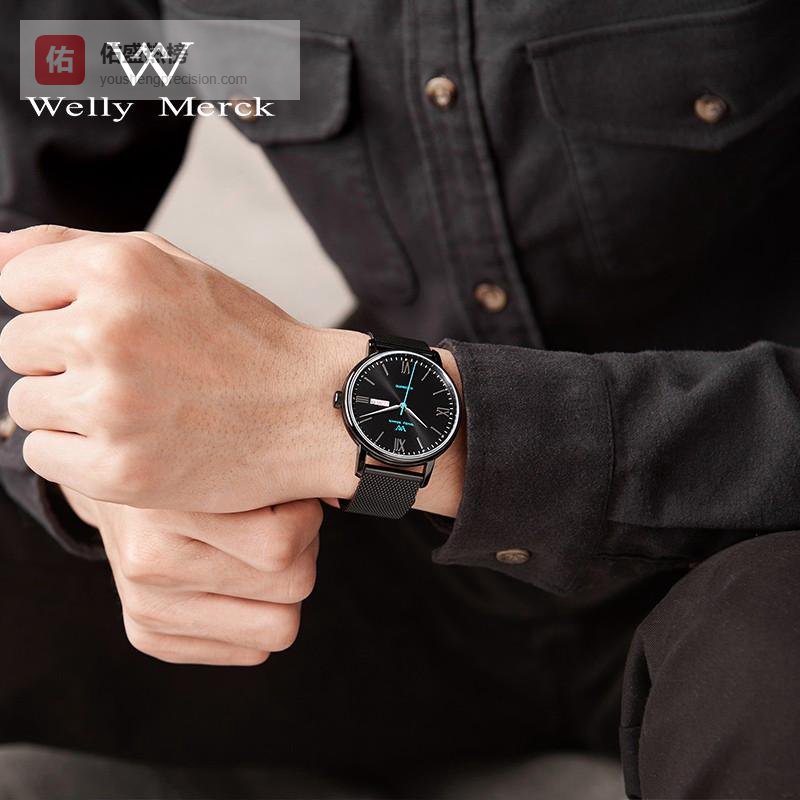 【品牌直营】wellymerck威利默克男士手表男学生潮流时石英表瑞士品牌轻奢送礼节日礼物进口男表-¥