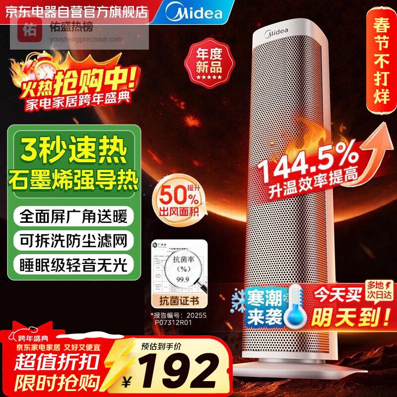 第1款:美的HFT20NZ这取暖器升温是真快,用的石墨烯陶瓷发热体,基本可以做到即开即热。不像以前的取暖器,开了半天屋里还是冷冰冰的。这玩意儿热起来速度确实挺惊喜,屋里温度提升很明显。