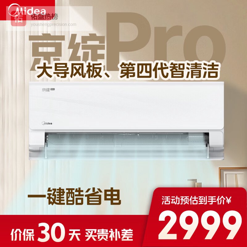 第2款:美的京绽Pro亮点:四向扫风、一键酷省电、56℃智清洁、APP远程控制