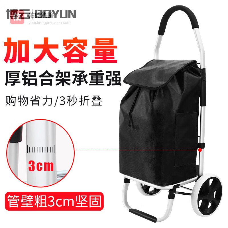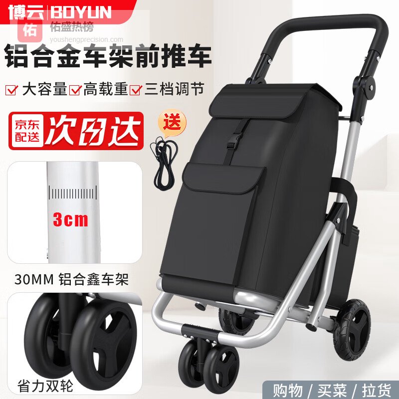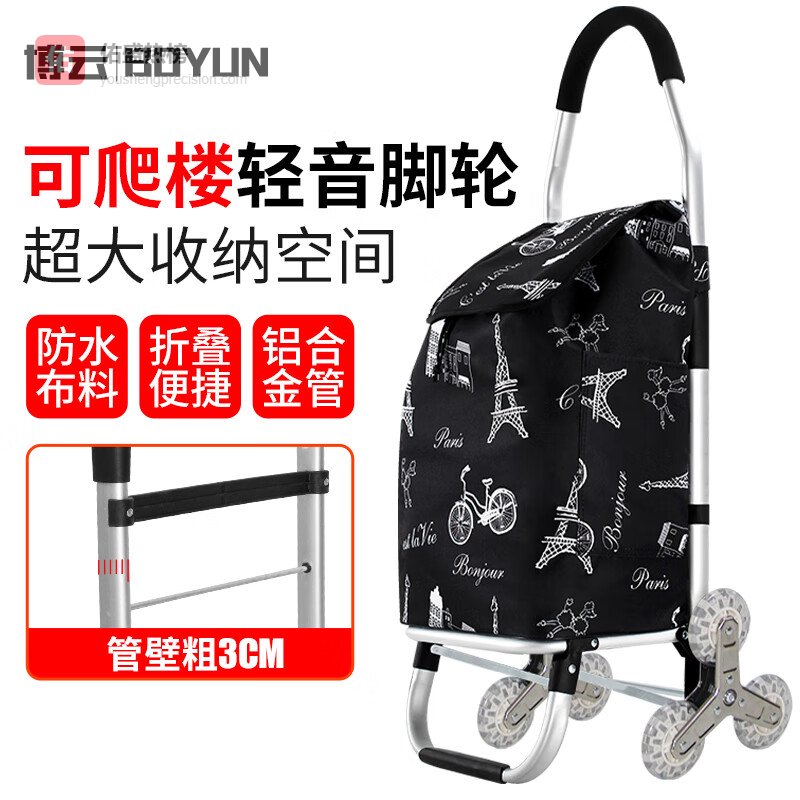 【京东自营】博云买菜手拉车超市便携老人行李车折叠拉杆车黑色铁塔爬楼购物车¥