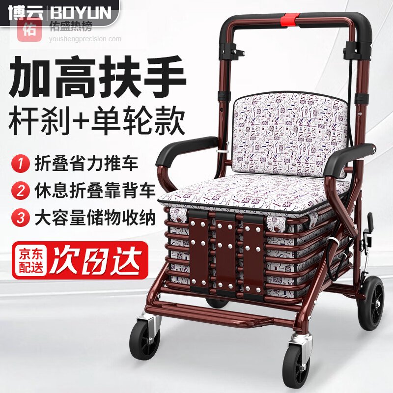 【京东自营】博云老年人推车可推可坐助行走器手推车可折叠老年代步购物车加大单轮¥