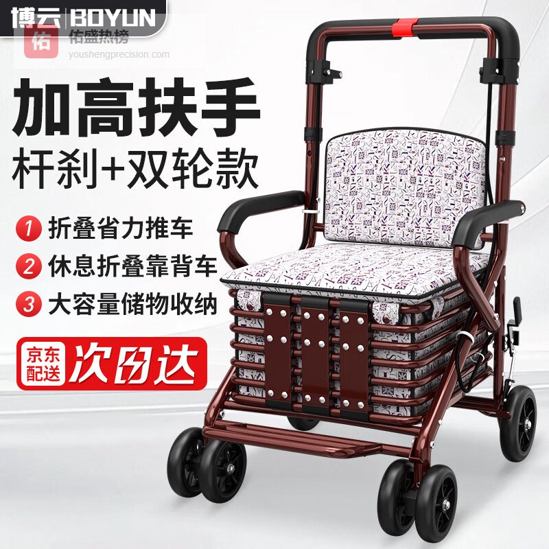 【京东自营】博云老年人推车可推可坐助行走器手推车可折叠老年代步购物车加大双轮¥